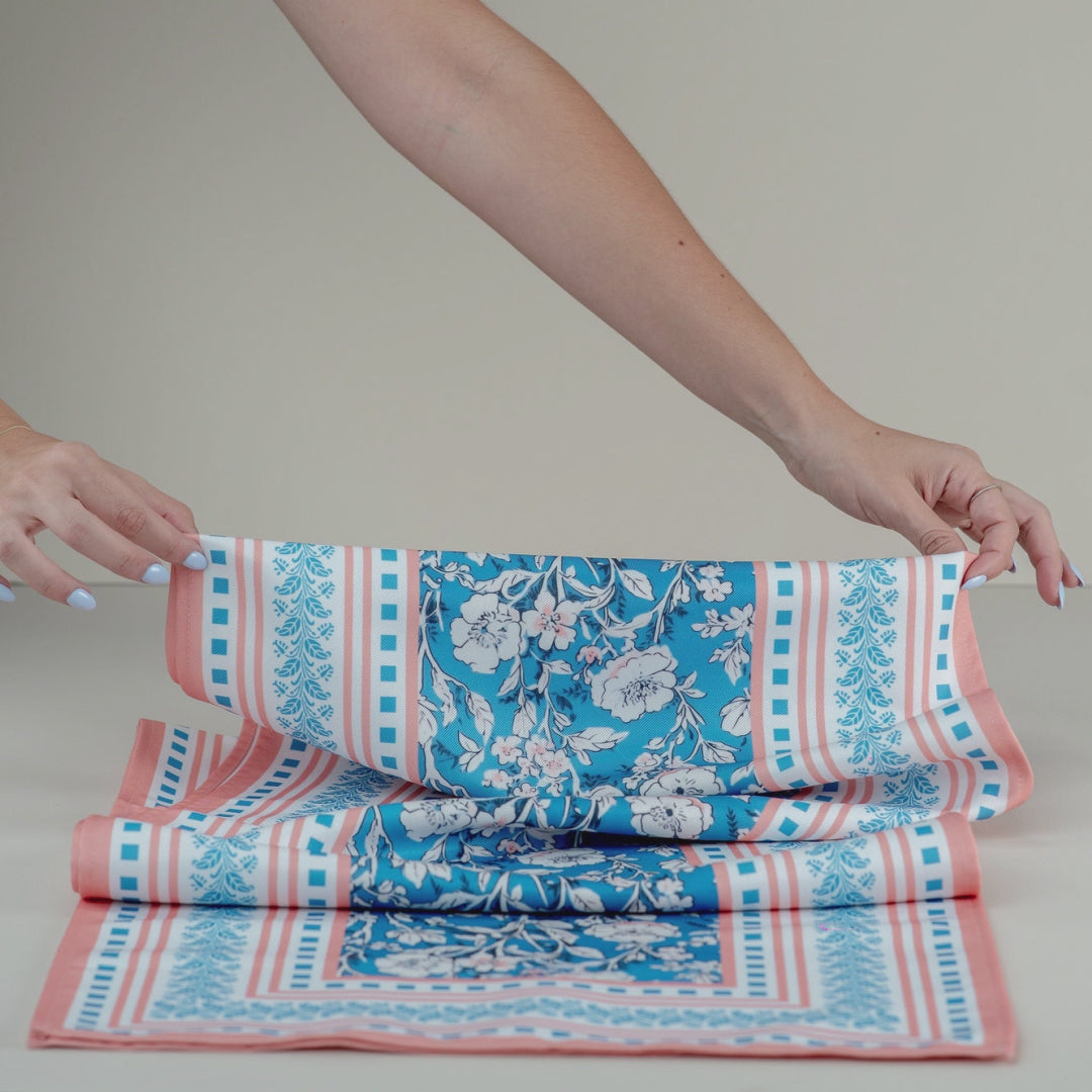 Add refined charm to your table with our Wild Indigo Table Runner. Delicate white blooms and leafy vines unfold over a deep indigo background, framed by soft peach and ivory borders. Elegant yet versatile, this design blends timeless pattern work with a modern color palette perfect for both everyday dining and special occasions.