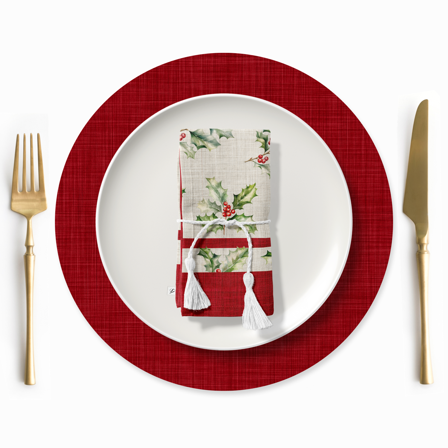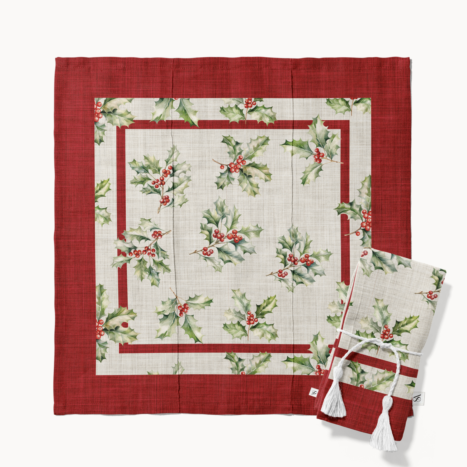 Celebrate the season with our Holly Jolly Napkin. Sprigs of watercolor holly and red berries scatter across a soft linen look background, framed by a festive red border. Cheerful yet refined, this napkin adds timeless holiday elegance to every meal perfect for family gatherings, Christmas dinners, or cozy winter brunches.